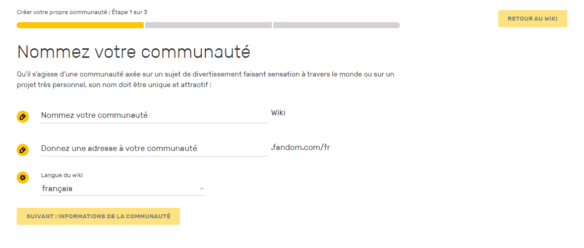 - Trouvez un nom pour votre wiki ou votre communauté